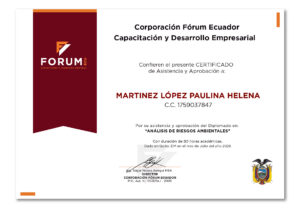 - Certificación en diplomado de Especialización expedida y Avalada por Corporación Fórum Ecuador.