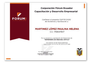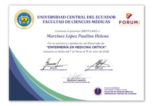 - Diplomado de enfermería en medicina crítica emitido por Fórum Ecuador.