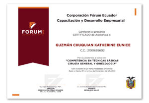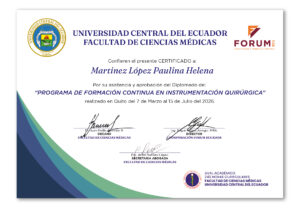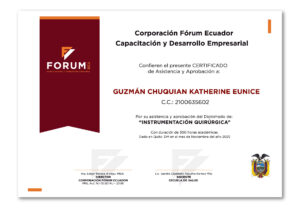 - Certificación de formación de instrumentación quirúrgica con Aval Académico de la Universidad Central del Ecuador.